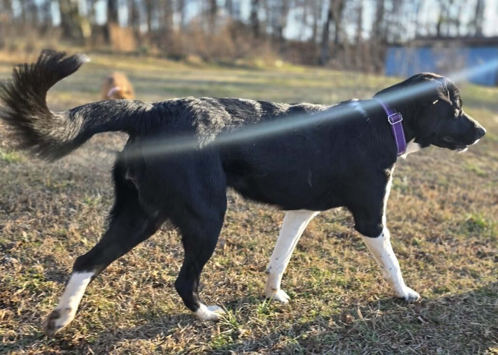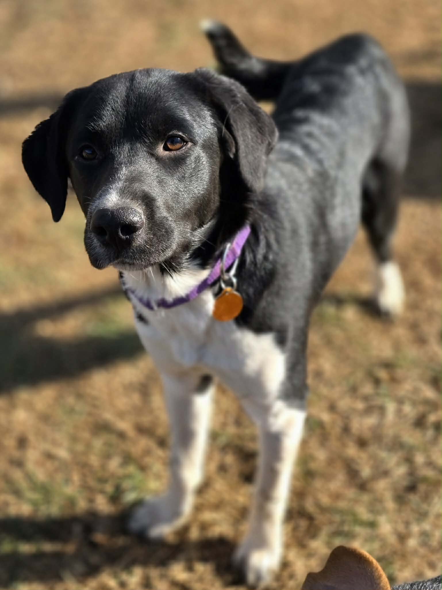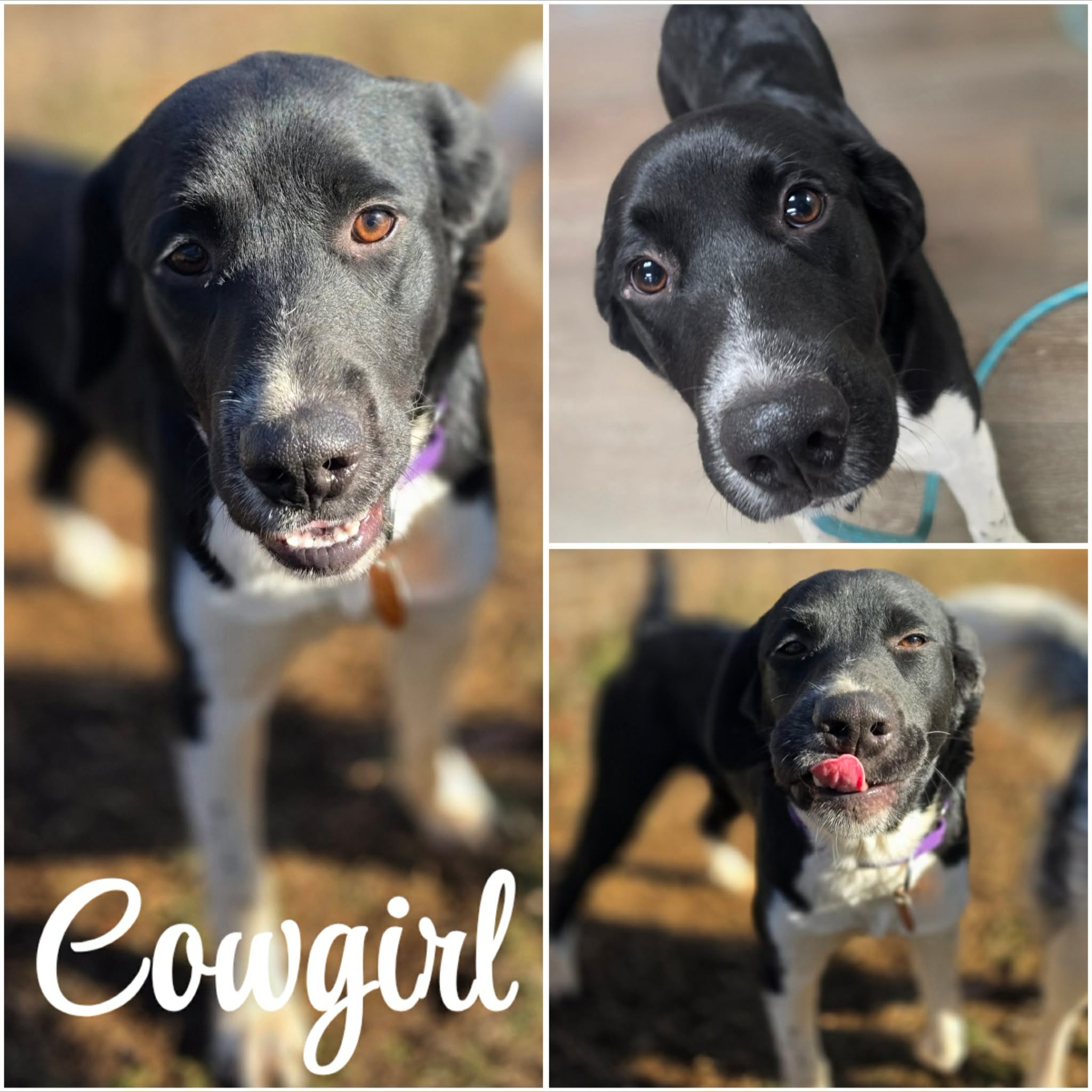 Cowgirl is an approximately 8 month old, 38 lb medium sized girl who is just happy to be part of whatever is going on. She really is everyone’s best friend. She loves people, loves other dogs, and is always ready to play or go explore 🐾