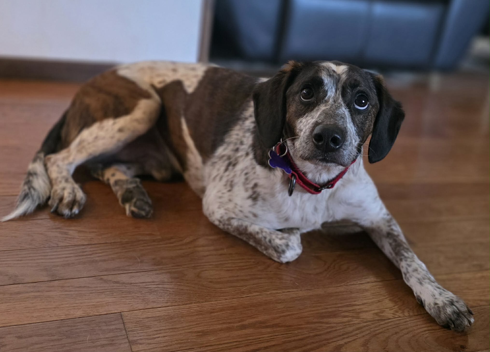 Beethoven is a 3-year-old, 42 lb hound mix who lives to be close to his people. He’s a total velcro dog and will happily follow you from room to room, just to make sure he doesn’t miss a thing.