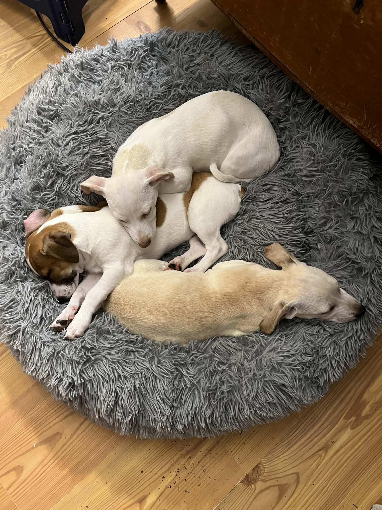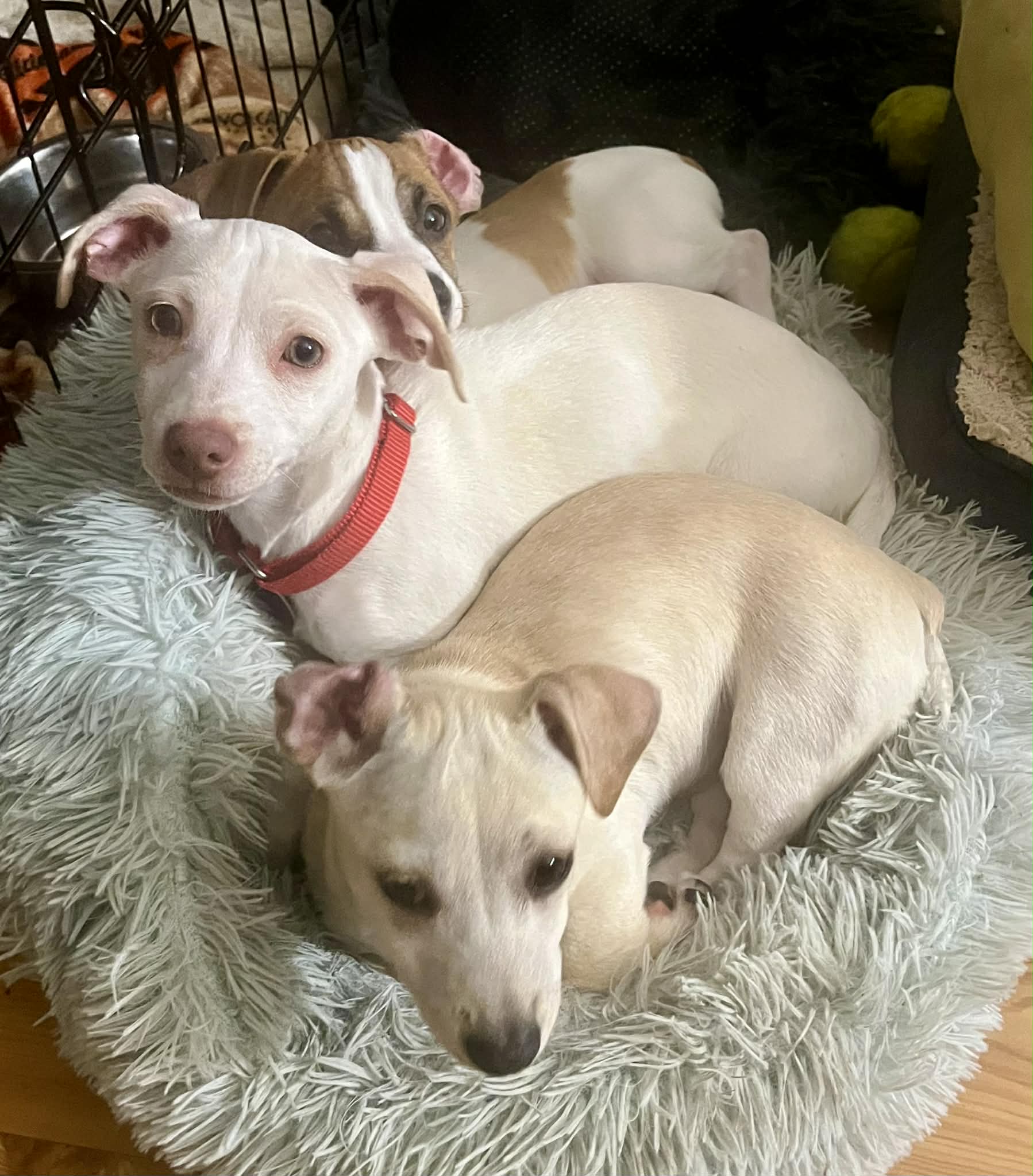 Chloe is a sweet, playful girl with a short coat and a long wagging tail (unlike her brothers!). She loves treats and playtime, and she gets along well with dogs and cats. With her affectionate personality and playful energy, Chloe is sure to bring joy to her future family. With training and support, she will grow into a devoted and loving companion.
