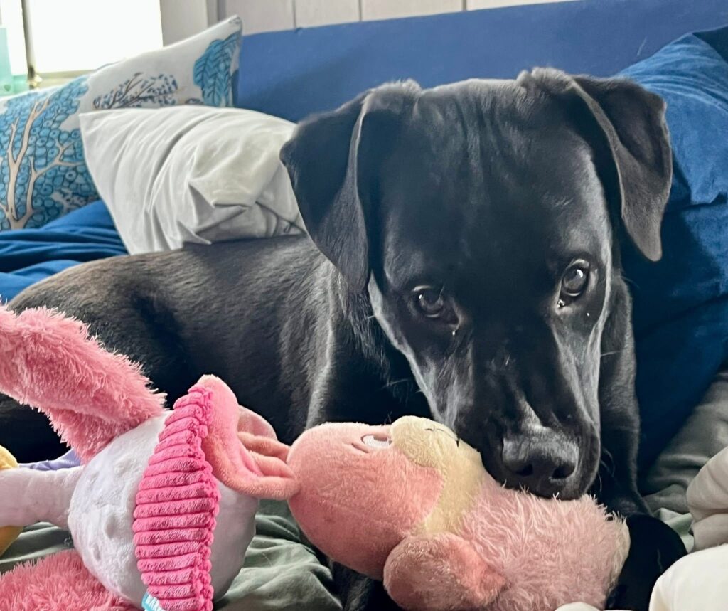 Playtime is Griffin’s favorite! He loves running and playing in the yard, romping with toys, and showing off his silly ping pong zoomies. After a fun filled day, he is happy to curl up close to his people at bedtime, always aiming for the best cuddle spot he can find. He settles nicely at night, knows how to sit, and is eager to learn more with continued training and encouragement.