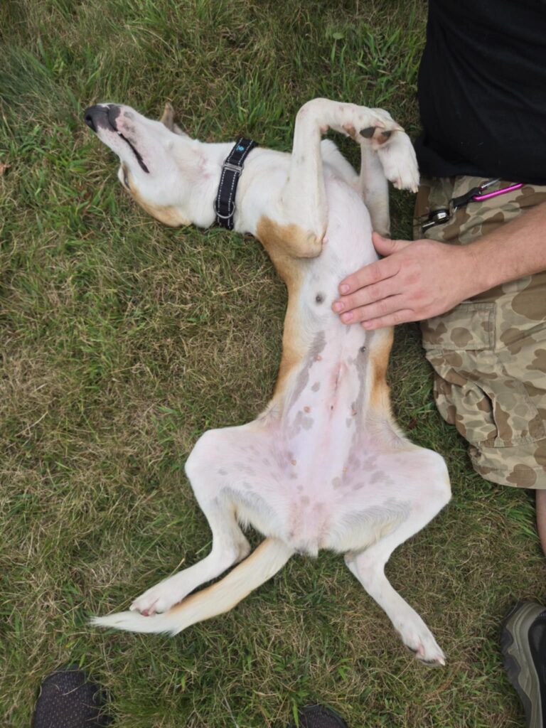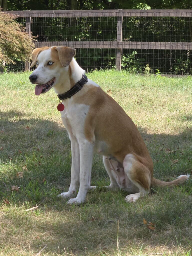 This happy girl greets everyone with a big smile and the cutest little noises, as if she’s chatting with you. She loves other dogs and would be delighted to have a furry friend to play or lounge with or to be your one and only. Iris loves  attention and will sometimes sit off to the side before joining in, taking it all in,  but she has been friendly with everyone she meets.