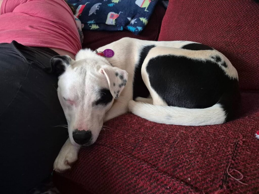 She enjoys being around people and likes feeling included in whatever’s going on. Maisy is settling into her foster home beautifully — she doesn’t mind the cat, gets along well with other dogs, and happily sleeps in bed with us through the night. She’s at a great age to learn routines, build confidence, and grow into a well-rounded adult dog with the right guidance. She’s playful without being overwhelming and continues to settle more as she gets comfortable.