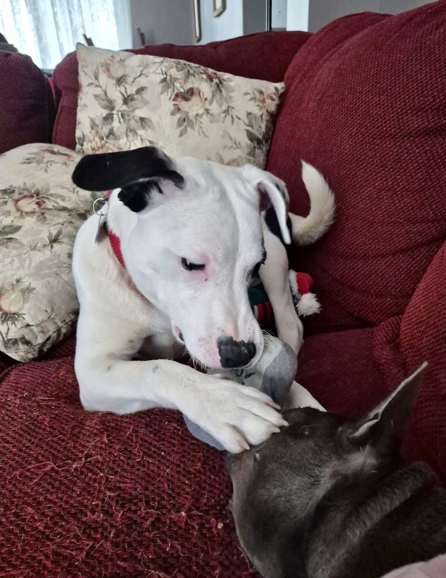 Maisy’s sweet face and unique markings draw people in quickly, but it’s her goofy, easy presence that really sticks. She’s looking for a home that understands she’s still young and is willing to offer patience, consistency, and love as she grows.