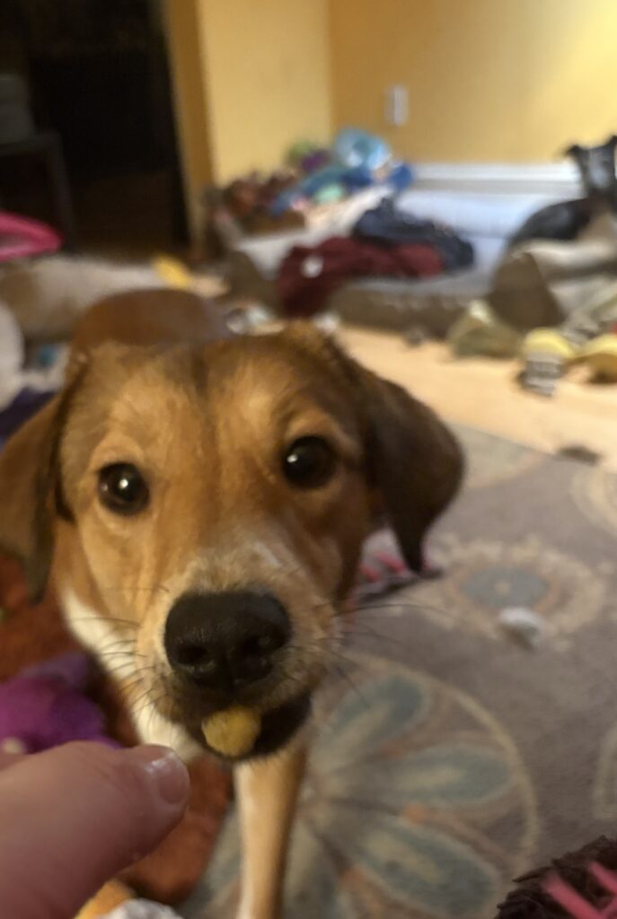 With patience, reassurance, and steady support, Matilda will continue to become braver and more confident. She’s a special girl who will reward her people with a deep, loyal bond once she trusts.