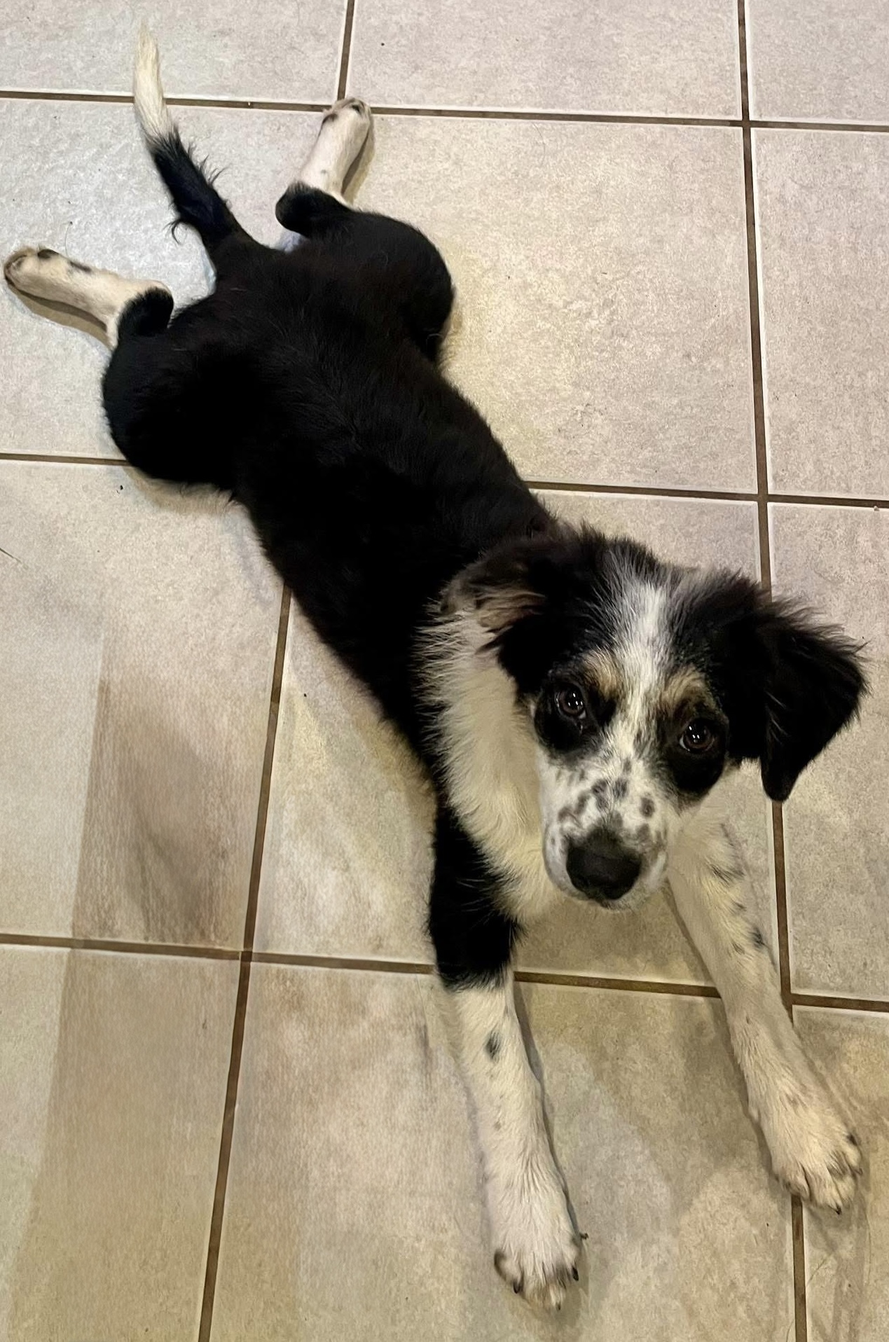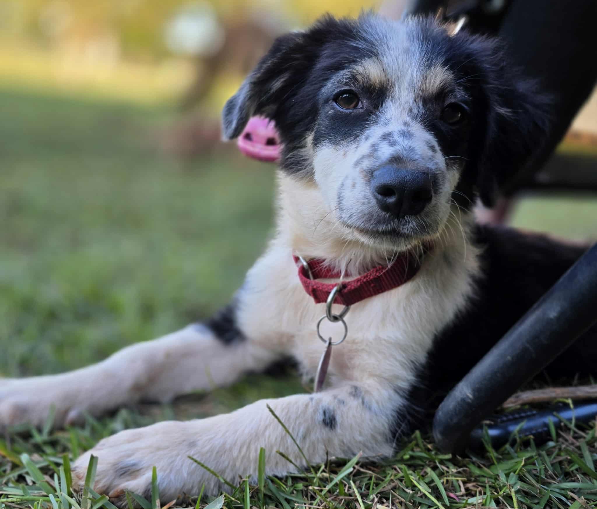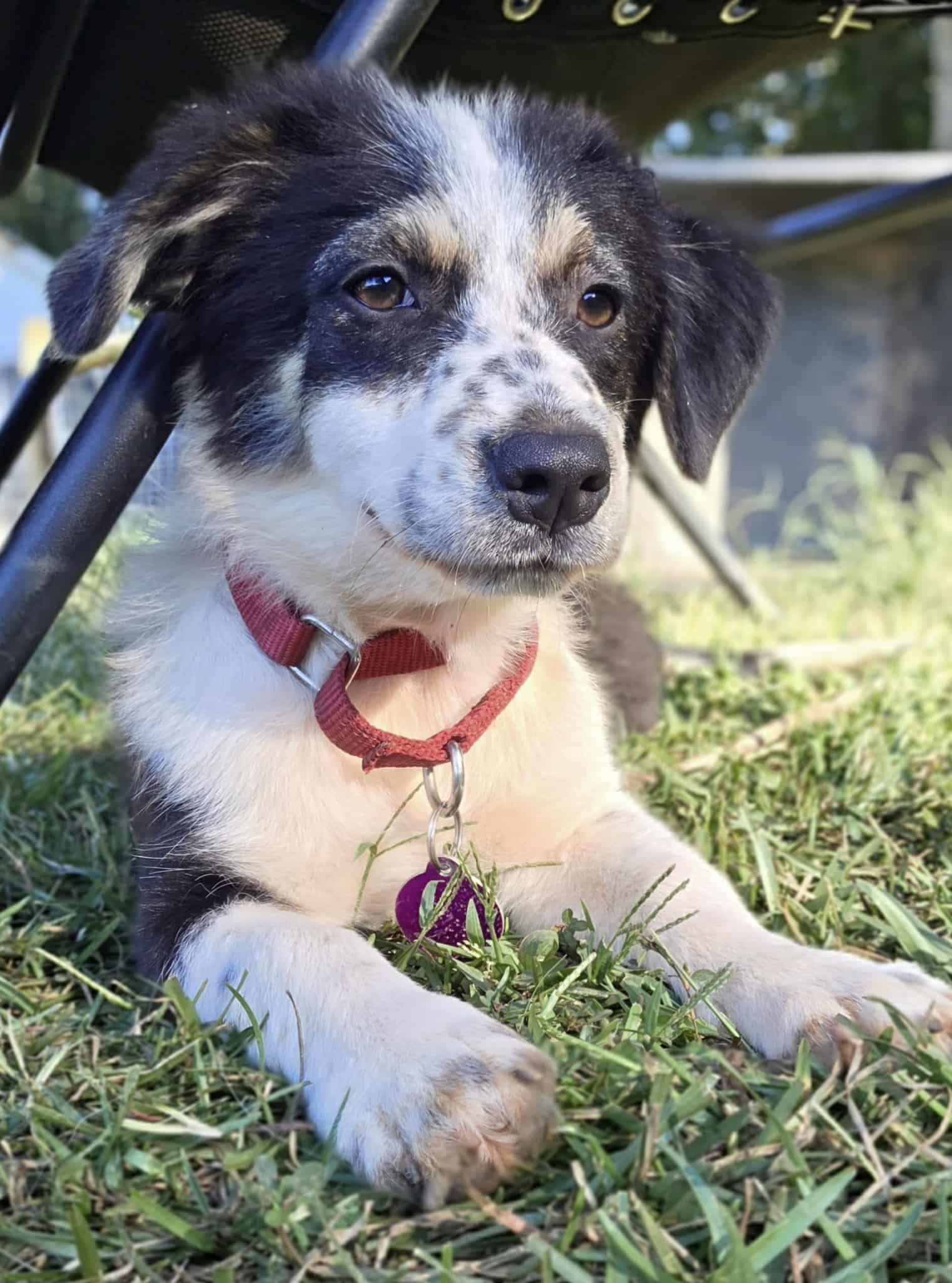River is a 5–6 month old, 15 lb sweetheart with the biggest heart and even bigger snuggles! This affectionate girl’s favorite place to be is in a lap, showering you with face kisses and soaking up all the love she can get. She’s playful and curious, but always likes to keep her people close—especially when exploring the yard.