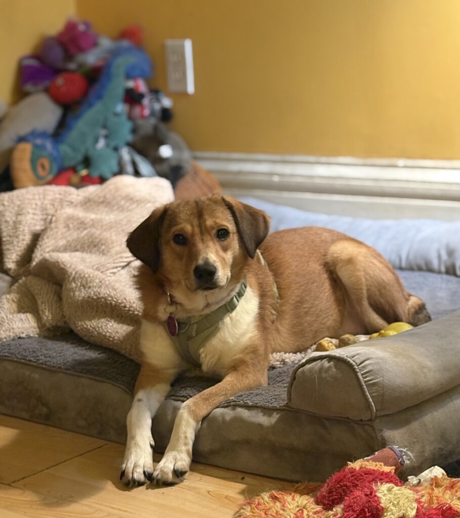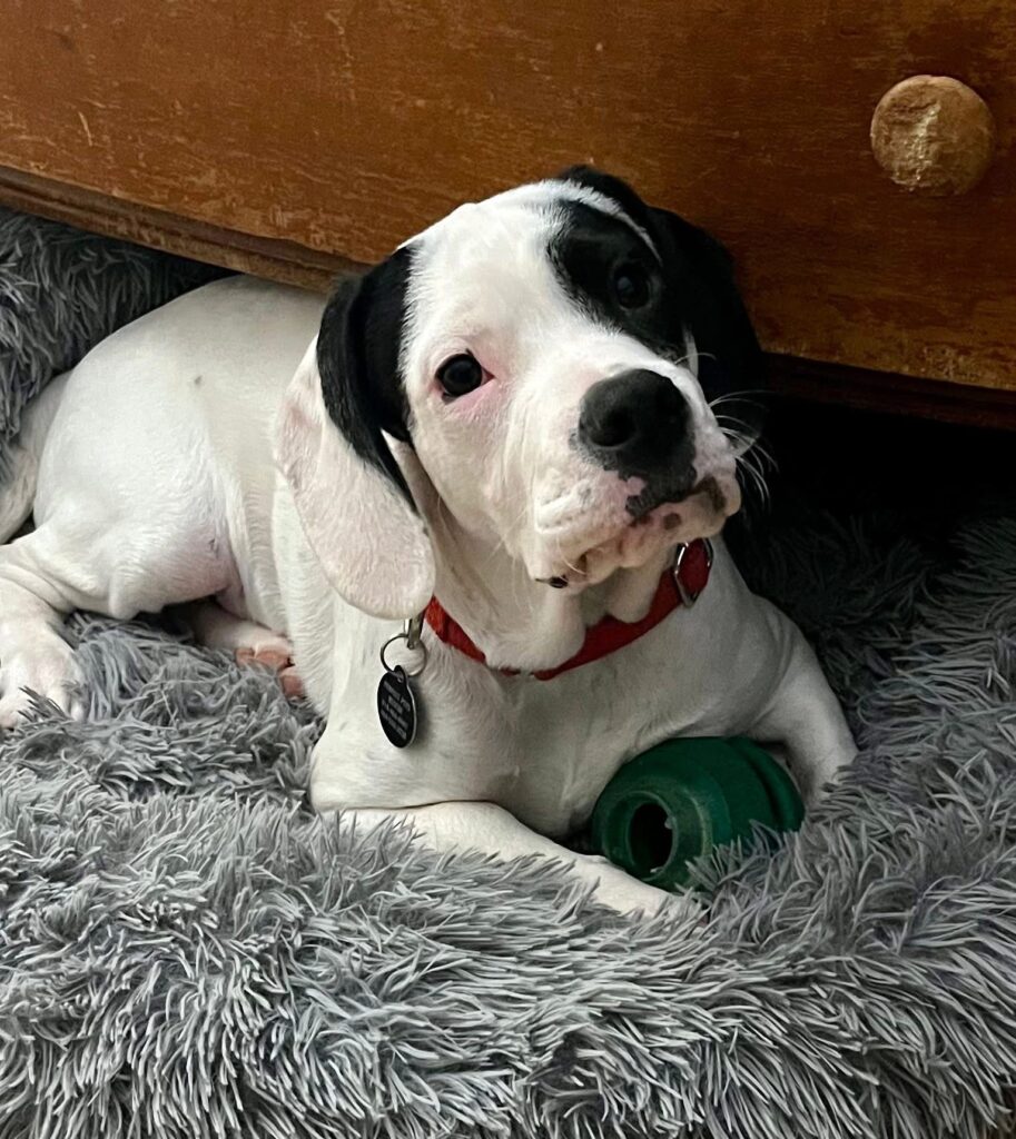 A newly adopted dog experiences a lot of stress. They often need time to settle in and decompress in their new homes. When you bring your new pet home simply, allow the dog to rest when needed, undisturbed, and in an area of the home without the likelihood of anyone not being able to resist petting. Use the rule of three when bringing in a new dog into your home.