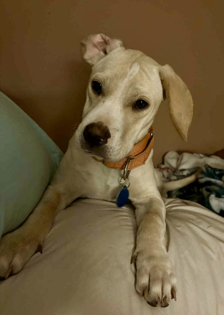 Meet Destiny Bestiny — “Desti the Bestie”! Destiny is a 1-year-old, 35-pound sweetheart with a mellow, fun personality. She loves